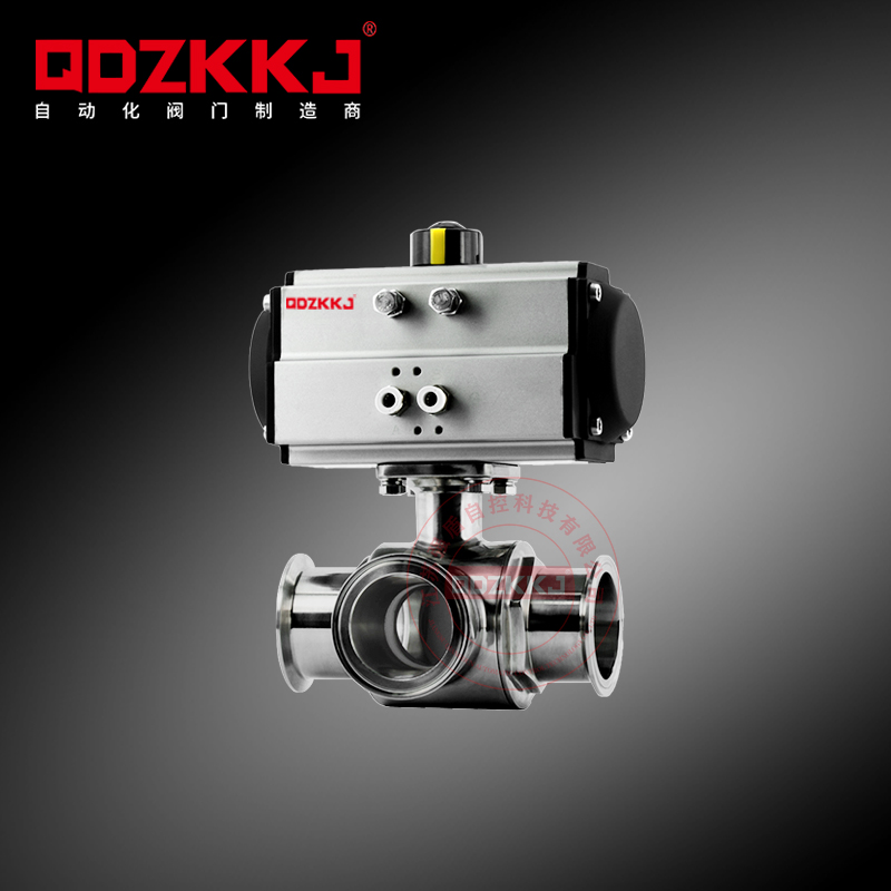 Q684/5F氣動三通快裝球閥可為L形和T形,氣動L形三通球閥(Q684F)用于介質(zhì)流向的切換,能使相互垂直的兩個通道連接; 氣動T形三通球閥(Q685F)用于介質(zhì)分流、合流及流向切換。T形三通可以使三個通道相互連通或使其中的兩個通道連通。氣動三通 快裝球閥流道經(jīng)過精密拋光和除菌處理。閥體采用不銹鋼精制而成,流道內(nèi)壁0.5um(240Grit)電子拋光,保持流體暢通無阻。密封面采用的全包PTFE沒有死角,保證衛(wèi)生且容易清洗。兩端為卡箍連接方便拆卸、清洗、維修。廣泛應用于啤酒工程、食品工程、化學工程、制藥工程、生物工程和水處理工程等領域。